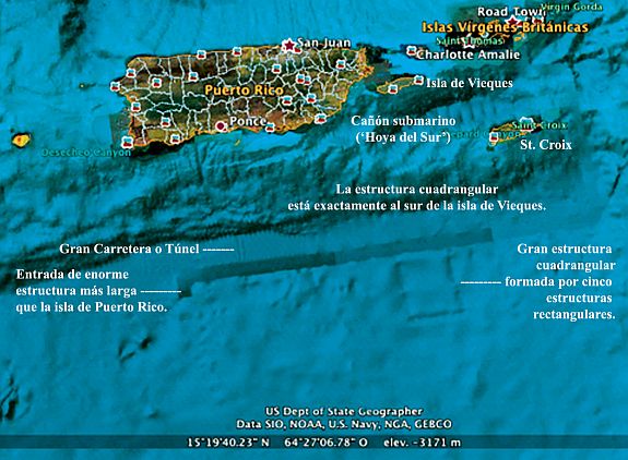 Researcher Jorge Martin presented this NOAA image showing what appears to be a large, artificial structure, like an underwater base, to the south of Puerto Rico: